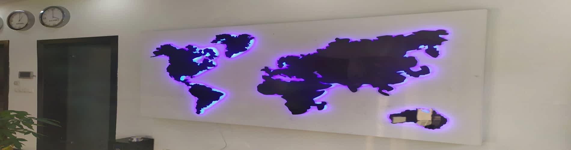 Azerbaycan'daki bir reklam ajansı, lazer makineleri kullanarak grafik tasarımı yapılan harfleri kesen krom tabakalarını işliyor. Harflerin kabartılması için düz şeritler kesilir ve krom kaynağı ile harflerin etrafına kaynatılarak dönülmektedir. Krom harfler, önden ve arkadan aydınlatmalı olarak iki çeşide ayrılır. Önden aydınlatmalı olanlara ise fileli krom harf denir.Fileli krom harflerAzerbaycan'daki bir reklam ajansı olarak, lazer kesim öncesinde harflere çerçeve eklenir ve ön yüz kesilerek boşaltılır. Boşalan alana istenilen renkte pleksi yerleştirilir. Alt kısımlara dekota kesilerek led ışıklar monte edilir. Sonra krom harfler, dekotanın üstüne yerleştirilir ve vidalanır. Işıkla harf rengi uyumlu ışık yayılır, kenarlarda 1.5-2 cm genişliğinde krom detaylar belirir.